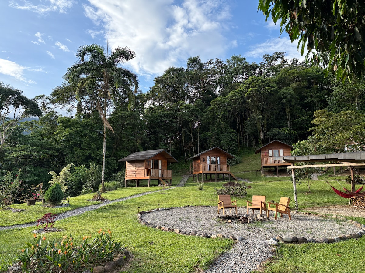 Colina Verde Ecolodge offers a unique experience in a charming cabin in the middle of the jungle. Discover the tranquility of our one-bedroom cabin, with large windows, a comfortable king-size bed, full kitchen, and outdoor dining area. Enjoy the outdoor terrace for a cup of coffee while delighting in the sounds of nature. Ready to leave your stress behind? Click "Book".