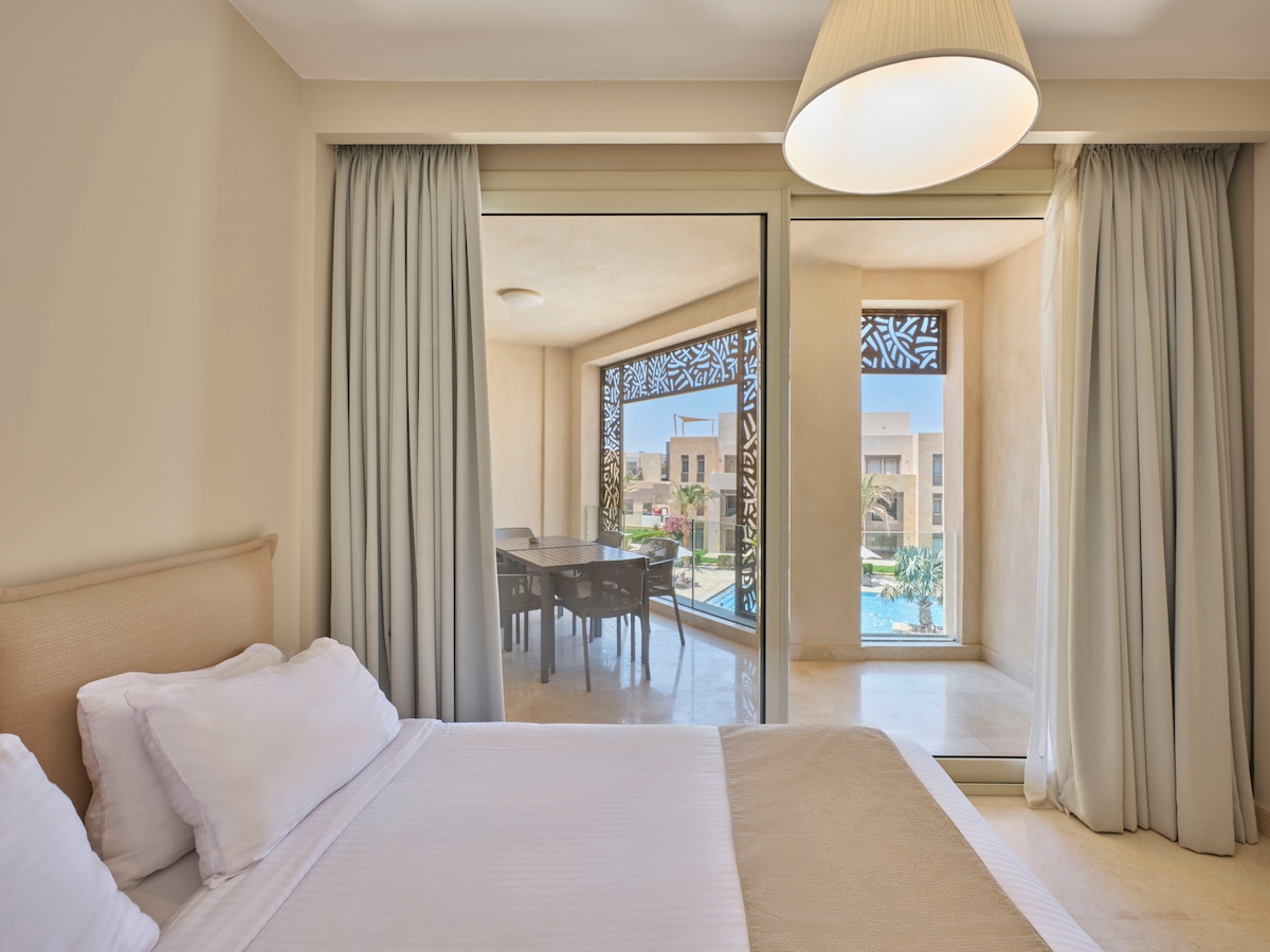 Seeking that perfect blend of comfort and Gouna cool? This 3BR pool-view retreat with a rooftop is your spot. Hang out in the open, sunlit living room or whip up something special in the fully equipped kitchen. When you’re ready to take in the view, the rooftop is all yours—ideal for lounging. With fast Wi-Fi and cozy beds in each room, you’ll have everything you need to unwind after a day by the pool or exploring Gouna’s local gems. *Enjoy a daily breakfast by the beach when booking this space