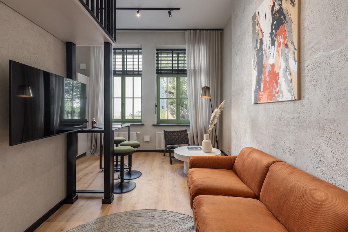 Welcome to Hallo Loft! Discover our sophisticated apartment with a glass-walled bedroom and a loft in the heart of Riga. Featuring a sleek design with modern furnishings and stylish accents, this space includes a fully equipped kitchen, a cozy bedroom, a modern bathroom, and a comfortable living area with views of Krisjana Barona Street. Located in the vibrant city center, you’ll be just steps away from cafes, restaurants, shops, and gyms. Experience modern comfort and convenience at Hallo Loft!