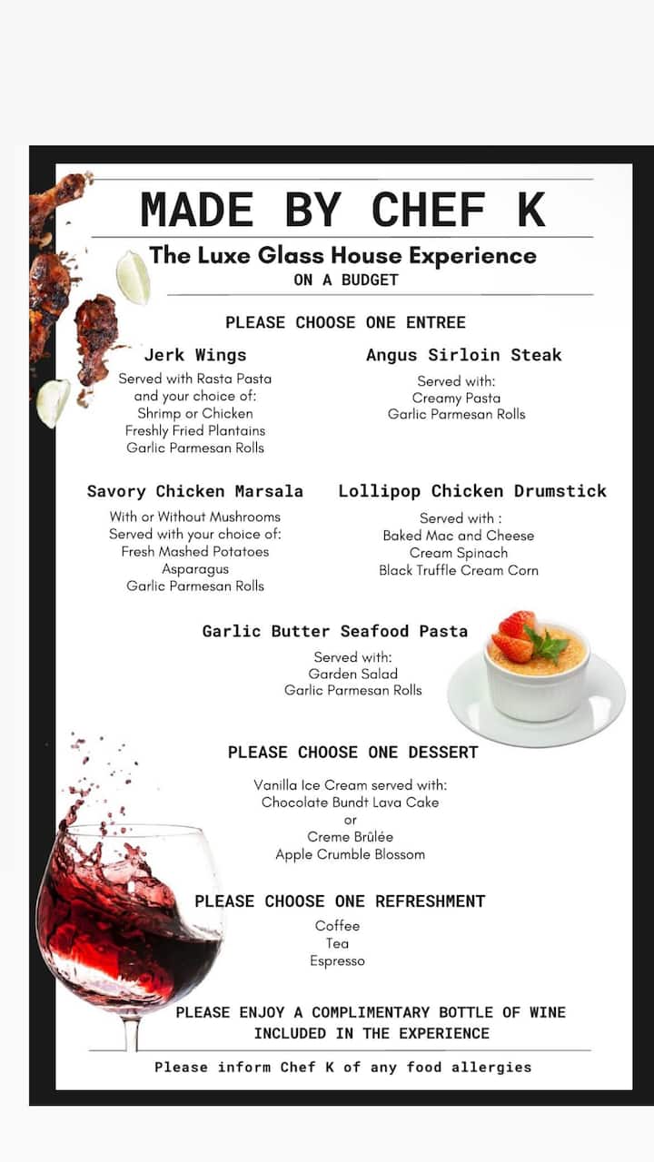✨starts at $250 (after you book, you will be giving the chef information to further discuss the menu options)