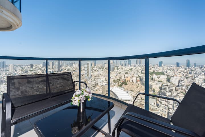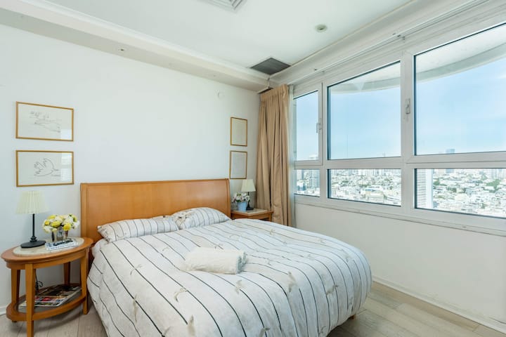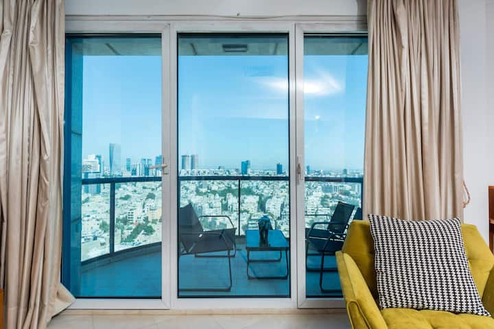 Step onto the private balcony, where you'll be greeted by panoramic views of Tel Aviv. Furnished with outdoor seating, it's an ideal spot for sipping morning coffee or unwinding in the evening breeze. The apartment also offers modern amenities like high-speed Wi-Fi, a Smart TV, and air conditioning to ensure a seamless stay.