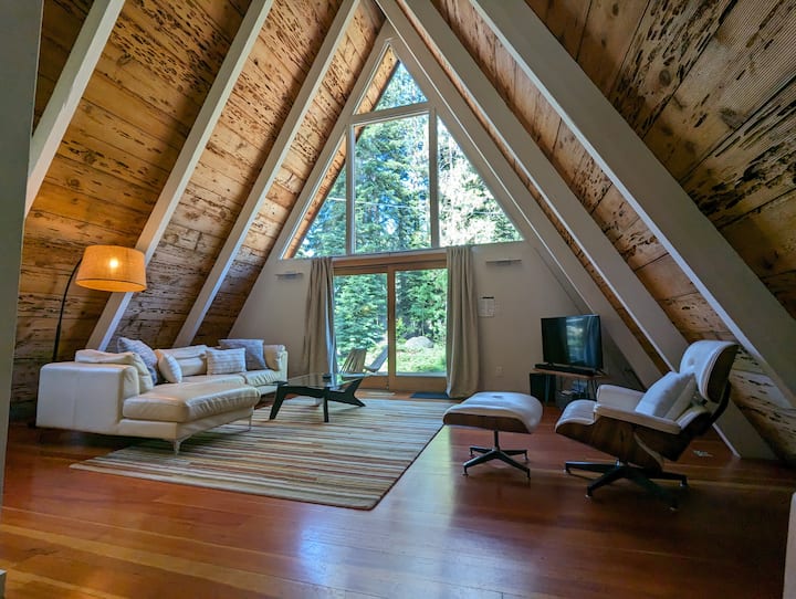 Located on Tahoe’s beautiful West Shore, the Dazzling Chalet blends modern design with classic charm. The architecture is TWO intersecting A-frames, soaring ceilings, and a bright open layout, this peaceful forest retreat offers plenty of space for families, couples, and friends. It’s just a short walk to Lake Tahoe and Sunnyside’s restaurants and markets, and only minutes to skiing, hiking, and all the best local attractions.