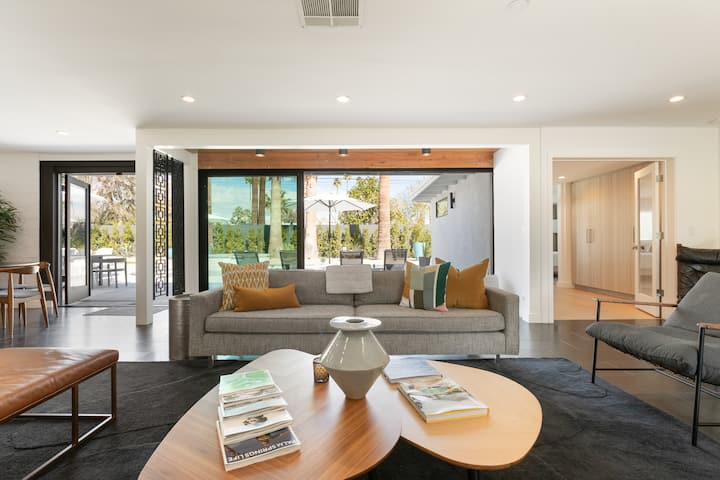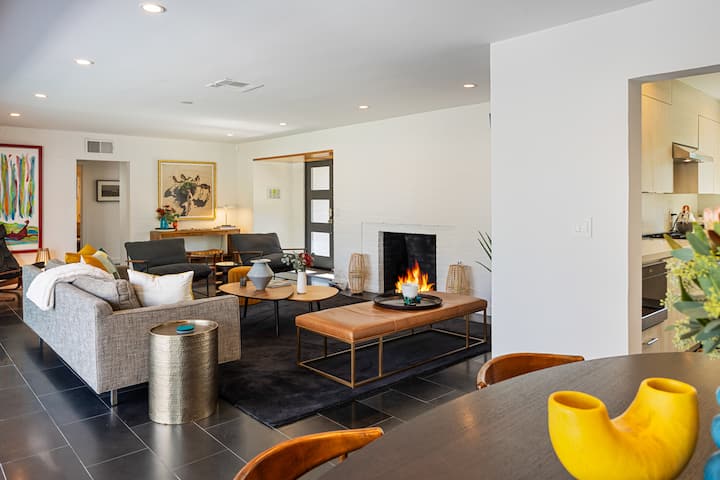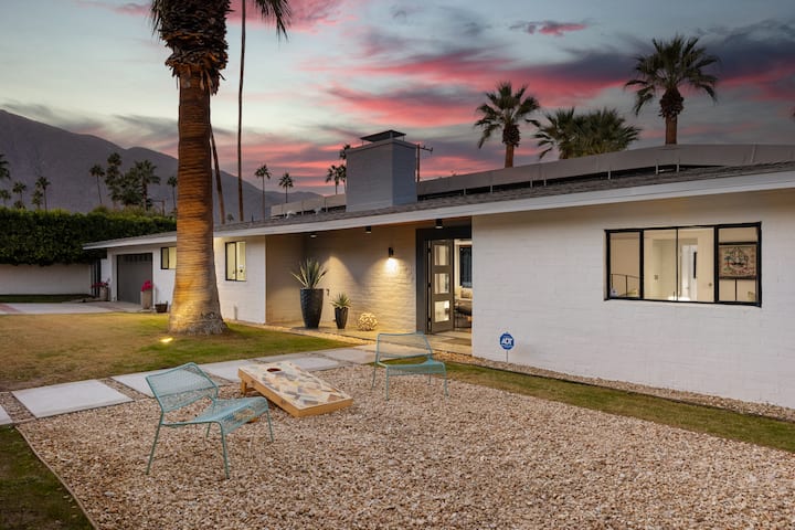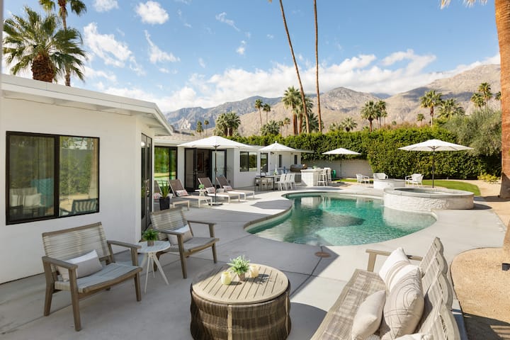 This stylish, reimagined classic has all the amenities you'd expect in a fine hotel and a modern home in the quiet, south Palm Springs neighborhood of Tahquitz River Estates. Close to downtown with 4 bedrooms and 3 full baths, this home brings the famous indoor/outdoor lifestyle of Palm Springs to you. The private, gated and walled yard provide an oasis for your stay with a salt-water pool, spa and outdoor kitchen. Enjoy the fire-pit and the spacious backyard on our beautiful starry nights!