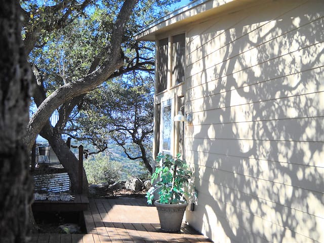 Located on Runaway Hill, Bella Green is a compound on 9.75 acres in the beautiful Texas Hill Country, where weather temperatures average between 60-85 degrees. Here you'll find an eclectic compound of independent buildings: the Bella Green Guest house, the spa room-library-exercise area-art studio, the soon-to-be added tiny houses and your host's eco-friendly main home.