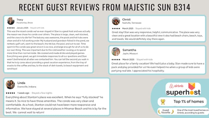 ✹ My reviews across all my properties support that my #1 goal is delivering an awesome beach vacation for my guests. This starts with a sparkling clean property and fast, excellent customer service. If you need anything at all, or if something is not right, I am quick to respond! I’ve tried to think of everything that my family and my guests would want in a beach rental. Vacation rentals are my passion, and I am always trying to improve the guest experience, so suggestions are welcome!