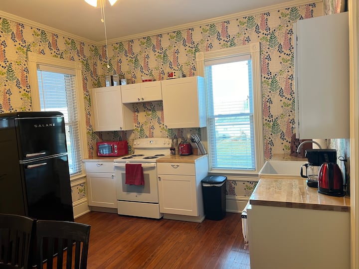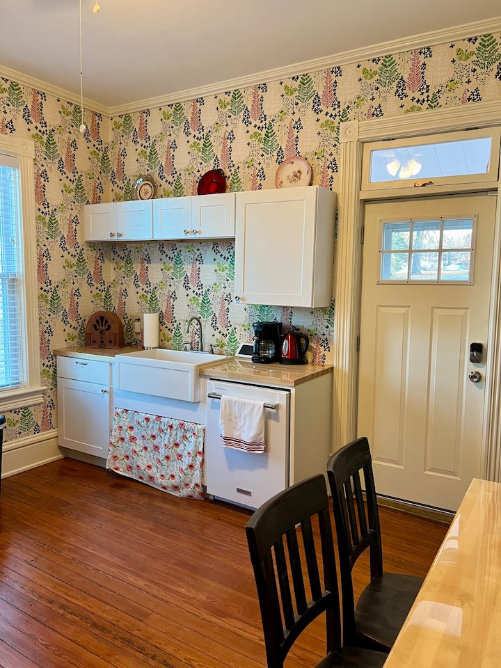 Steps away from the historic Ohio State Reformatory, our Retro House has been fully renovated and styled in a 1940's fashion with intricate wallpaper and delightful decor touches.