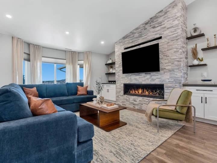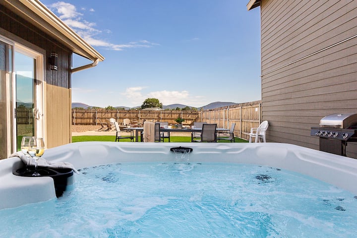 Play all day, relax all night. Your private 3-bed mountain retreat features a dedicated pickleball court, bubbling hot tub and crackling fire-pit—just 15 minutes from downtown entertainment.