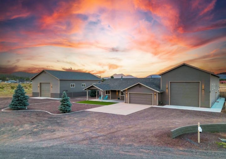 Play all day, relax all night at this private 3-bedroom mountain retreat, just 15 minutes from downtown Flagstaff. Designed for families and groups, this home combines modern comfort with outdoor fun—complete with a dedicated pickleball court, bubbling hot tub, BBQ grill, and a crackling firepit for unforgettable evenings under the stars.