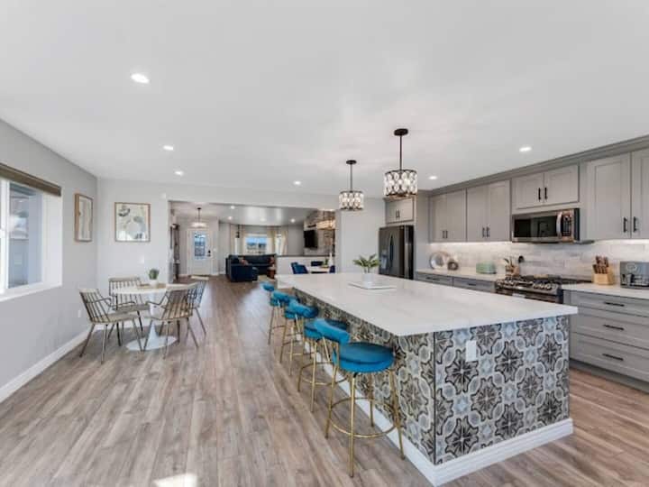Inside, you’ll find three spacious bedrooms furnished with plush linens, room-darkening shades, and cozy décor to ensure restful nights after days of adventure. The fully stocked kitchen makes meal prep a breeze, with a coffee bar to kickstart your mornings. Gather around the dining table for family meals, then head to the inviting living area for game nights or movie marathons on the smart TV.