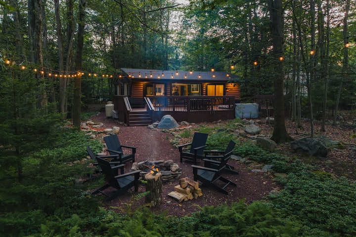 Romantic Log Cabin W/ Hot Tub, Fire Pit, Projector