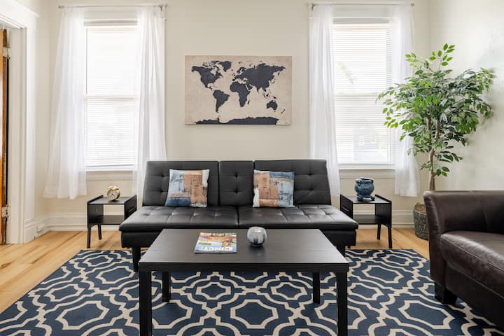 Enjoy Peace of Mind During Your Cincinnati Stay. Experience the perfect blend of historic charm and modern comfort in our beautifully remodeled second-floor apartment. Nestled on a serene street, this stylish space offers the convenience of city living with the tranquility of a residential neighborhood. Whether you're here for a short visit or an extended stay, our goal is to ensure your stay is as comfortable and enjoyable as possible, providing you with a home away from home.