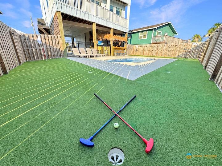 Perched a mere 5-minute walk from the shores of Gulf Shores Beach, our 8-bedroom beach house boasts a private swimming pool & patio! On the inside, 3879 sq. ft. of living space awaits, featuring HDTVs in each room, and a range of games for all around fun to be had! Your stay also includes $400 in FREE area attraction tickets! You’ll receive one free ticket daily to the best area attractions including the Theme Park at OWA, dolphin cruises, and more.