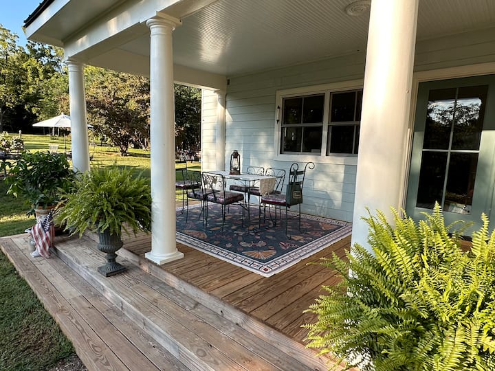 The front veranda is yours! The front door leads into our spacious foyer and in to the Living Room and upstairs to the bedrooms. In the morning we'll open the french doors for you to come in and enjoy a homemade farmhouse breakfast, which ranges from our house special: freshly made Greek yogurt with local berries and scones right out of the oven to our secret recipe waffles along with fluffy scrambled or poached eggs with sausage or bacon. We're very creative, so we'll let you know what your choices are depending upon the time of year and what's available. We love breakfast as much as you do! You can dine in our Dining Room or, on a lovely morning, take it outside to one of our verandas! And come on down any time for freshly ground organic coffee!