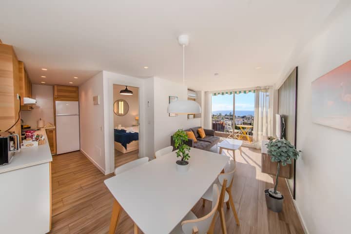 This fresh and stylish apartment is close to shops, restaurants and the beach; and it is located in a residential area in a complex building from the 70's which is not of the same standard as the flat's interior.