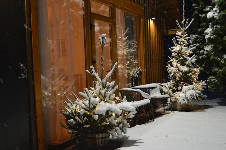 We also have another lodge - Pond View Tiny Cabin - with 4 sleeping places. In the warm season, we are wrapping up 4 more people in two small glamping houses - just for an overnight stay.