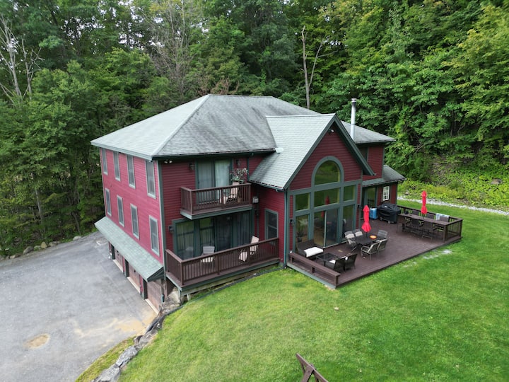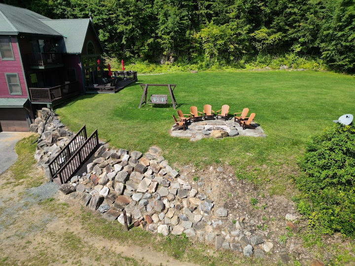 The firepit, sun beds, pool, and alfresco dining are great for summer trips.