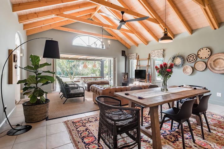 Make a gentle start to the day around the pool at a secluded abode nestled in beautiful oak trees at the foot of Table Mountain. This refined retreat combines a 150-square-metre sun deck, a covered outdoor patio, and a stunning vaulted ceiling. No more load shedding due to solar/battery backup.