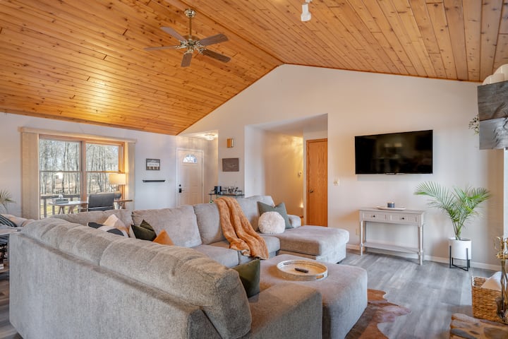 Soak in the hot tub, watch a movie under the stars, unwind on the deck, grill up a feast, & gather around the fire pit. Fish right from the shore or explore via boat. Bring your own or use included kayaks for endless adventures!