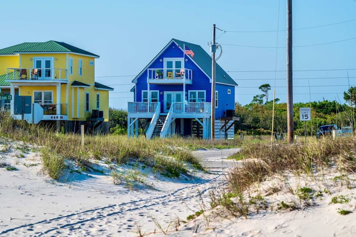 In addition to these wonderful interior spaces, A Wave From it All offers a range of outdoor amenities that will enhance your beachside vacation. Take advantage of the outdoor shower to rinse off the sand after a day at the beach. The outdoor sink and fish scaling table are perfect for cleaning your freshly caught seafood. And don't forget to grab the beach toys and chairs provided for a day of fun in the sun!