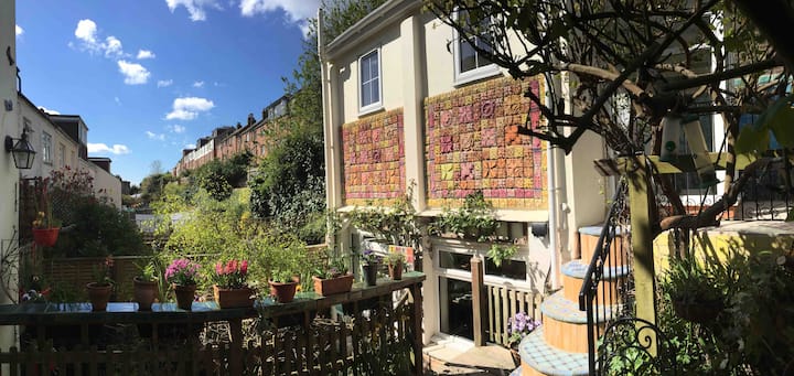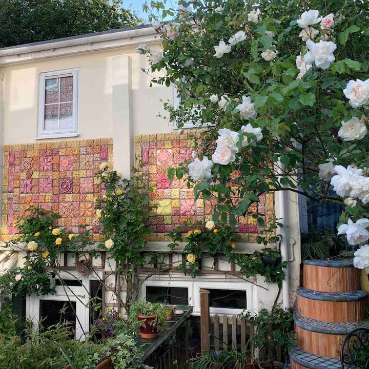 The Ceramic House is an award winning stunning artist’s house, featured in many magazines. THE GALLERY ROOM is a self-contained bijoux en suite room. Double bed, fabulous tiled bathroom. Coffee/tea, fridge, microwave, private patio. Free parking.