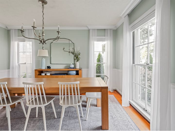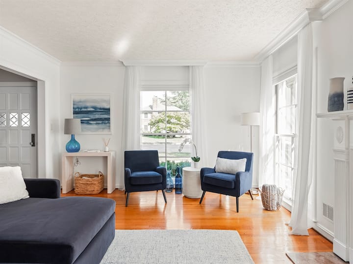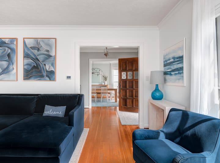 Hayden House has been well taken care of through the years. The main floor is flooded with natural light from oversized windows & the home has original hardwood floors. The 1940s character is balanced with the perks of newer kitchen appliances, and a newer primary bathroom with double vanity, walk-in shower, and heated floor. Many of the furnishings are from Crate & Barrel, Williams-Sonoma, West Elm, Schoolhouse Electric, Rejuvenation, and Pottery Barn. Enjoy the comfort of Helix mattresses & premium linens on the two king size beds. The kitchen features Viking & Le Creuset cookware, and everything you need to make a family dinner. If you are looking for a neighborhood home with high quality & comfortable furnishings, an attention to detail, and appreciate small touches like Williams & Sonoma hand soaps, then our home is a great fit for your wish list.