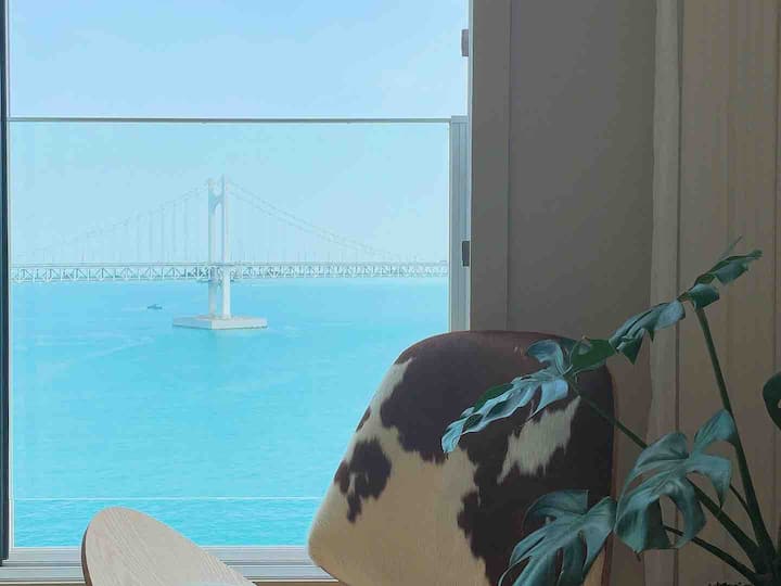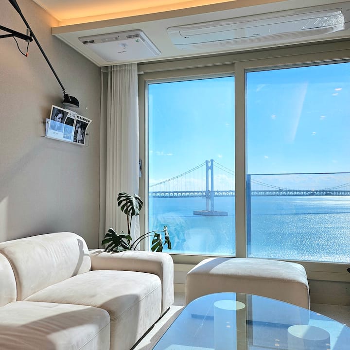 1 [Legal Accommodation] High Floor * Gwangan Bridge Ocean View * 2 Rooms (3 Queen Beds + 1 Single Bed) * 1 Living Room * All Rooms Air Conditioned * Free Parking