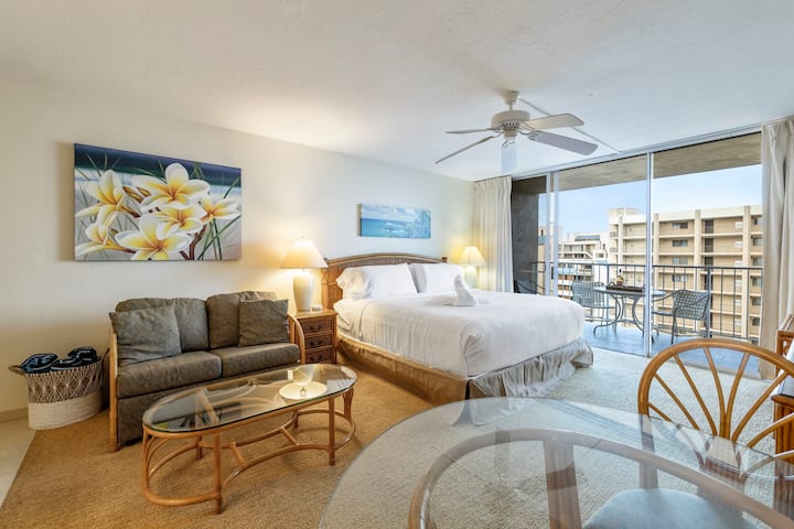 10th-floor studio with partial ocean views and tropical island breezes