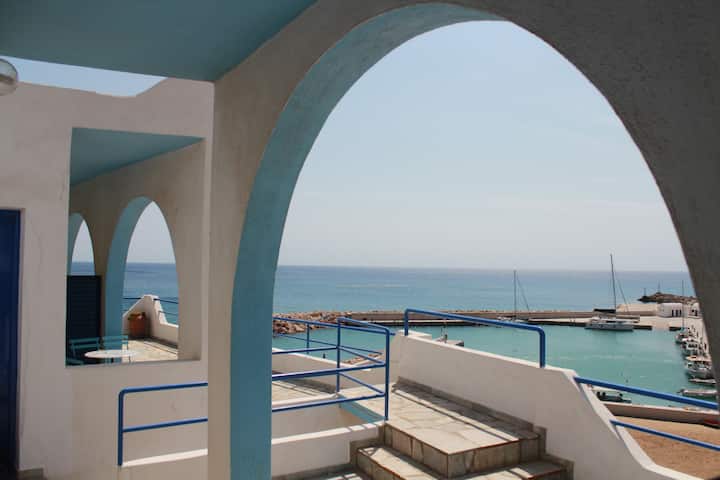 A car road connects the port with Chora, as well as with most of the interesting locations of the island. A bus service is available to connect the port with Chora, as well as other fascinating destinations on the island. For those seeking greater flexibility in exploring the island, the option to rent a bike or a car is also available. The road distance to the village is about 4 kilometers.