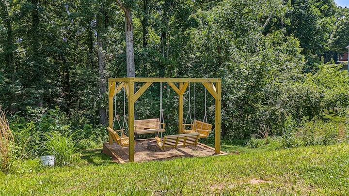 - Fun amenities: You’ll never run out of things to do at Asheville Getaway. You can spend hours watching movies or playing games at our movie / game room or enjoy the outdoors at our fire pit and swings.
