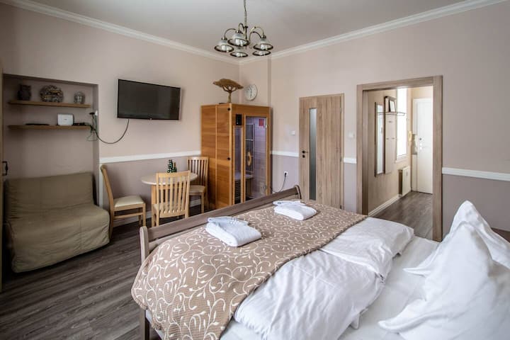 We provide our guests with towels, bed linen and a 24/7 support during their stay in Prague :)
