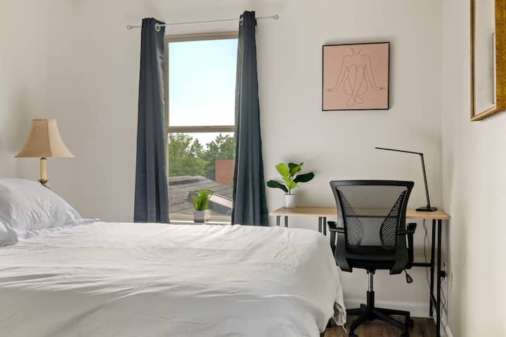 Sleek Room w/ Dedicated Workspace in Modern Home
