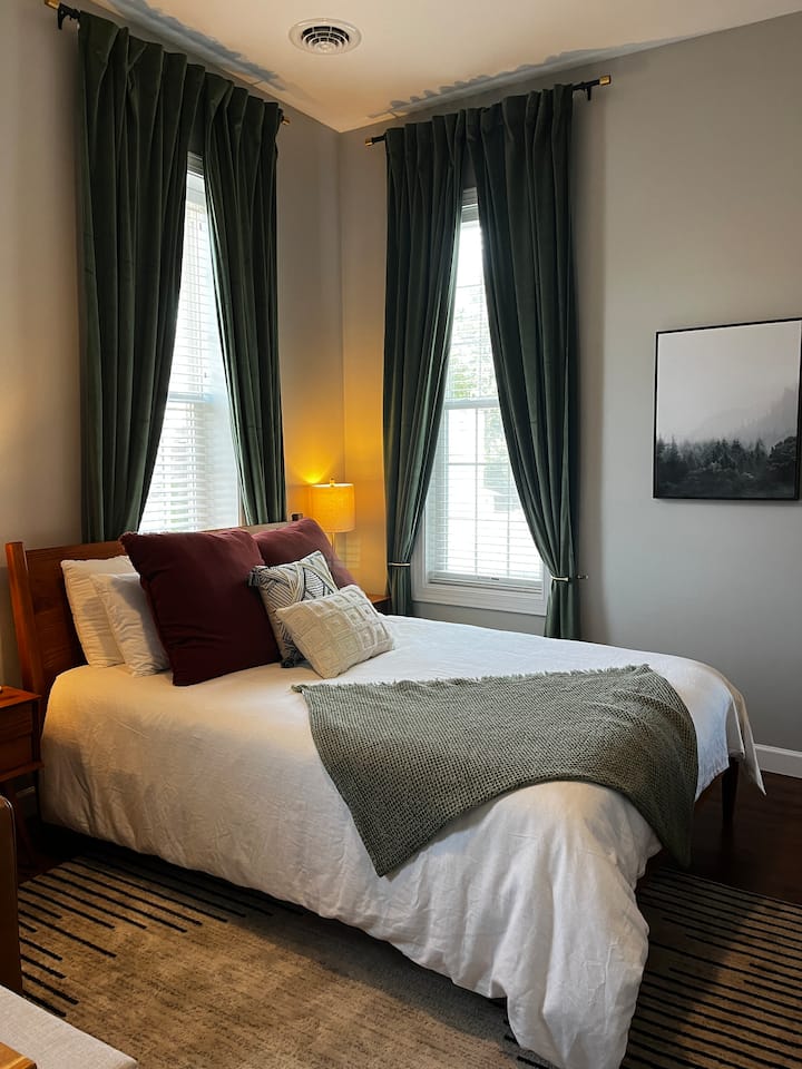 The room-darkening shades and extra bedding are loved by guests.