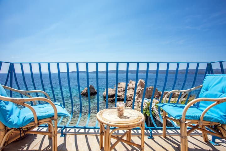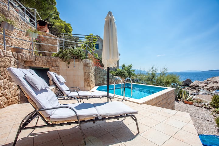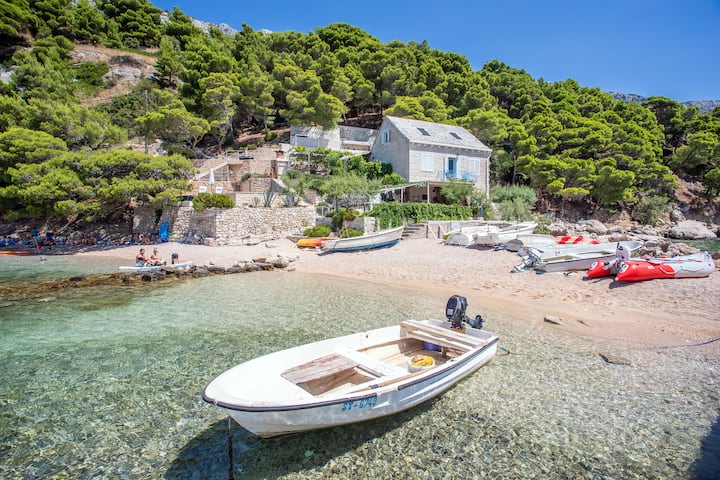 Unique beach house with a pool in secluded bay!