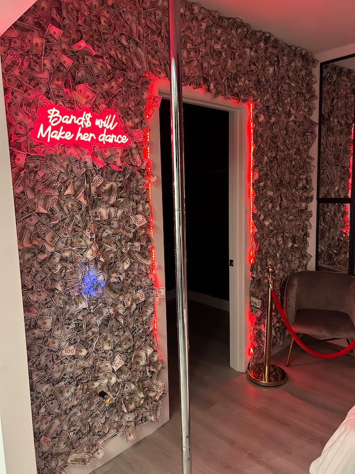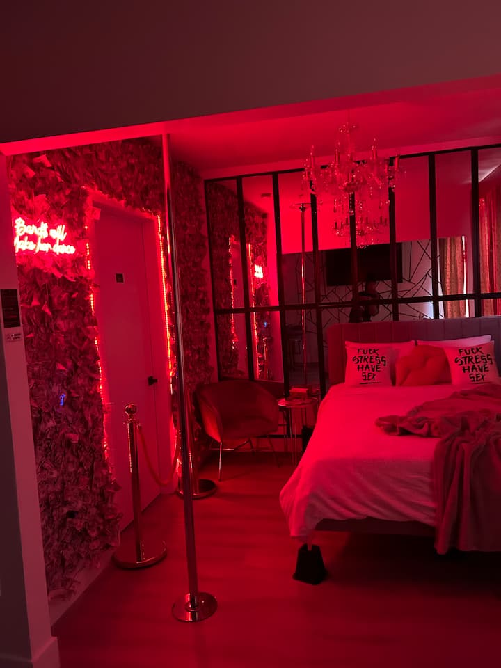 We just know you're going to love your stay at our Luxe Glass house 3 .Get a good nights rest on our Queen mattress. Walk into a custom mirror background including a beautiful crystal chandelier in the bedroom with plenty of fun!! . Full of entertainment, money wall , exotic dance pole & secret glow room !!! This room is not for children under 18