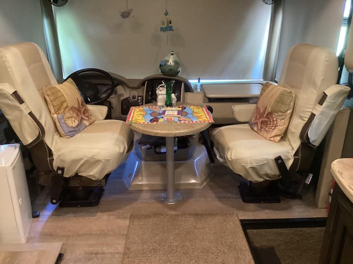Revel in the comforts of this unique and luxurious, fully furnished RV to provide you with everything you would ever need for a perfect and carefree glamping stay.