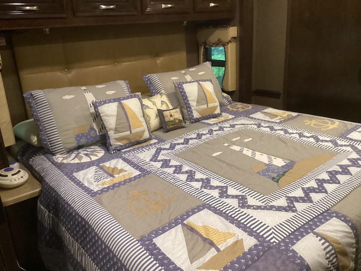 Retreat to the back of this luxurious RV to get all the rest needed to continue your Tennessee adventures.