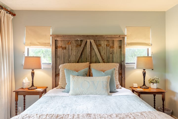 Jim's a Mortgage Banker while Deb manages our Airbnb Riverfront Country Lodge.