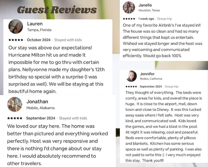 Hi everyone! My name is Nellyvonne Arroyo and I'm from Puerto Rico. I currently live in Palm Bay, FL, and I'm loving it. I love my Island, but unfortunately we got hit by hurricane Maria on 2017, which made me, my husband, my kids, mom and grandma move here. But have no regrets at all. I immediately found a job at a Cuban bakery(Tree of life) and after that everything was history. I've been a souschef, a manager and now an airbnb host.