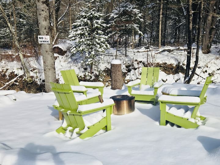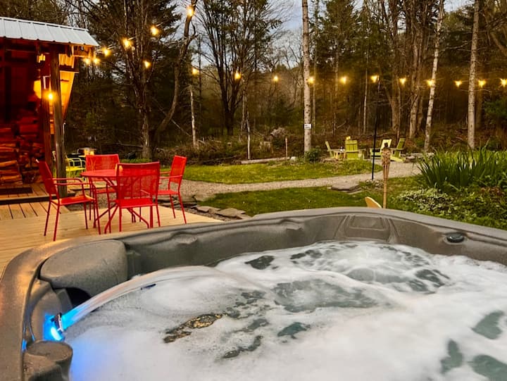 Catskills Luxury awaits in our bright red 1840s farmhouse. Perfect for girls' weekends, friends' groups, and family getaways! Relax in the Finnish sauna, take a plunge in an antique cold tub. Enjoy a roaring campfire in the Solo Stove. Snuggle by the bedroom gas fireplace. Melt away stress in the Hot Tub. Unwind to the sound of the tumbling brook. Enjoy the quiet, snowy woods. Spin vintage vinyl on the turntable. Cook in a well equipped kitchen with a Sous Vide & quality cookware.
