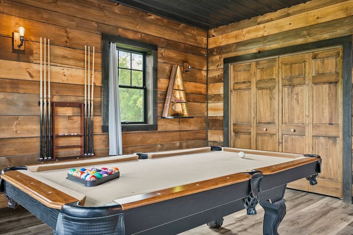 Big Sky Barnhouse...Where historic meets extraordinary. 20+ guests, 5 bedrooms, 4 floors, 6000 sqft, a basement beach, & amenities galore. Slide down from the barn loft into the kitchen! Includes a Golf Simulator, Hot Tub, Sauna, Tiki Bar, Sand Volleyball Court, Frolf, Pool Table, Arcade, Firepit, Indoor Swings, Screen Porch, & Turf Patio! Close to wineries, breweries, Devil's Head Ski/Golf, Devil's Lake State Park, The Dells, Lake Wisconsin, Parfrey's Glen Waterfall/Hiking, and so much more!