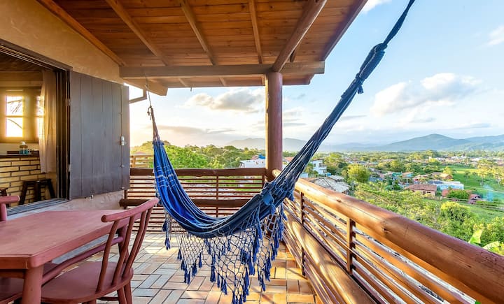 The Bangalôs do Rosa property has an external infrastructure prepared for your stay: Swimming pool with sun loungers, lounge, hammock area, playground for children, garden, patio, terrace with views of the lagoon and mountains and parking.