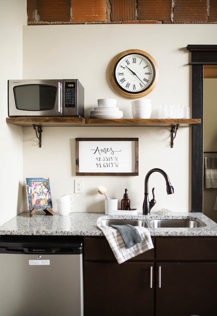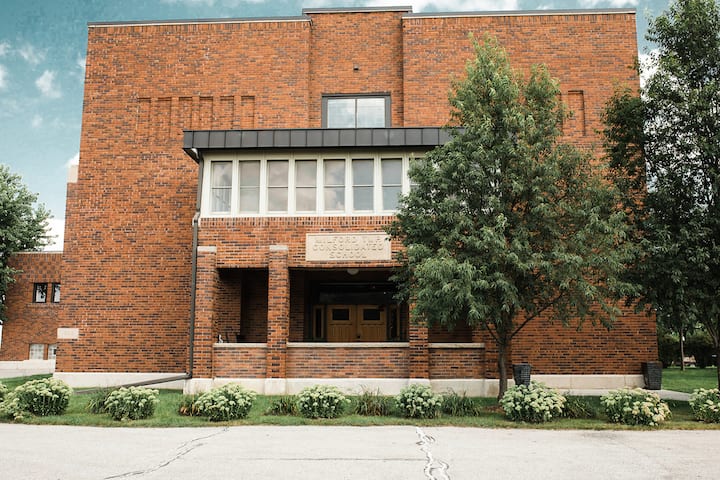 The Milford Schoolhouse, Iowa's beloved 'Prairie Castle,' is located just two minutes off I-35, and 10 minutes from Downtown Ames; Iowa State's campus; and Duff Avenue restaurants. This incredible piece of history has been transformed into a beautiful residence, with spacious guest suites available to the public on the second floor. Surrounded by Iowa cornfields, this quiet country school combines art and architecture for a unique Airbnb experience.
