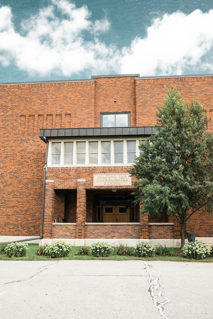The Milford Township Consolidated School was built in 1923 and children began attending in the fall of 1924. The original structure excluded the gym addition, which was built in the 50's. Milford was an operating school, in some capacity, until the 90's when Nevada further consolidated and there wasn't a use for the historic country school.