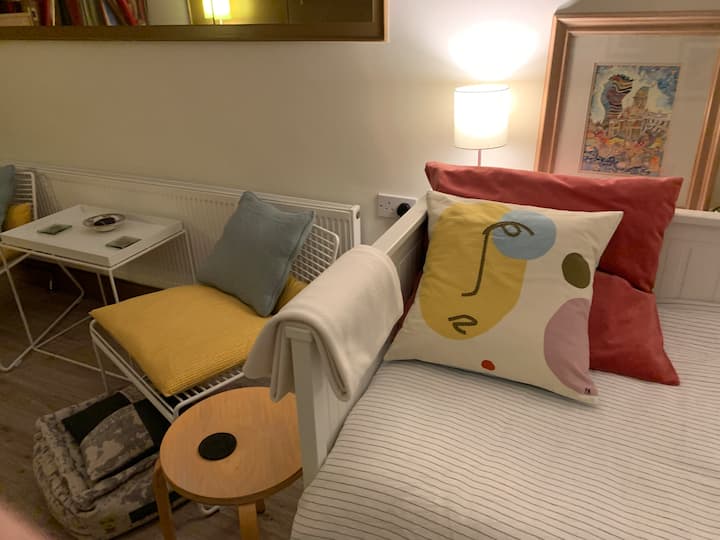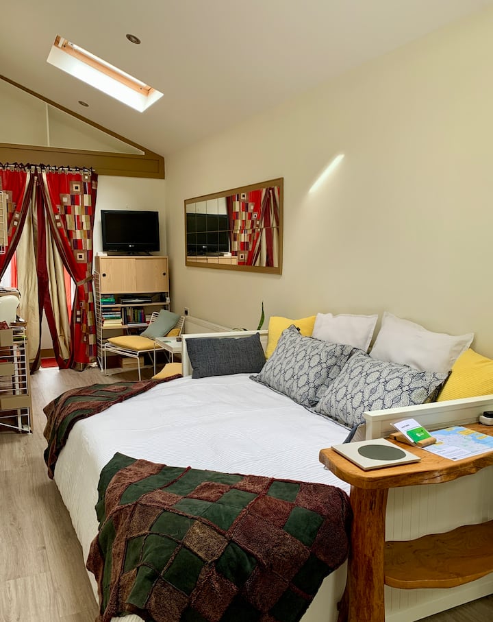 The studio, measuring 22 sq. meters, is completely self contained and is separate from the main house. It has its own entrance and free off-street parking. We provide a comfortable bed with high quality bed linen and goose down duvets to guarantee a good nights rest.