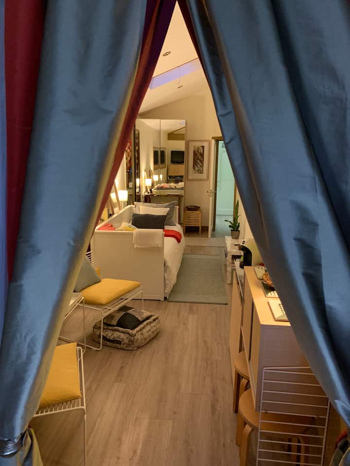 The Guest Studio is a beautiful, clean, high quality space: It is designed with the discerning traveller in mind who enjoys a high standard and their independence.
