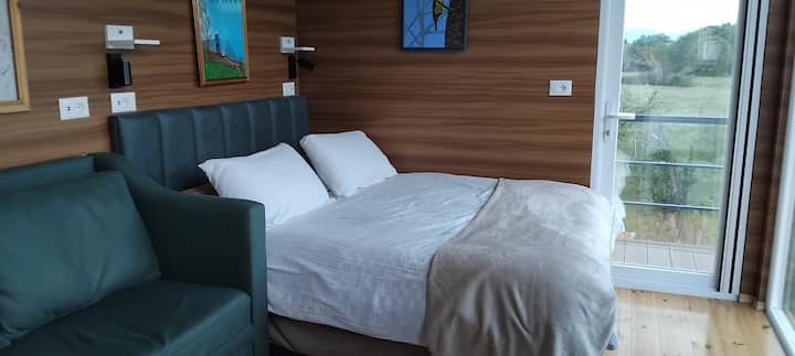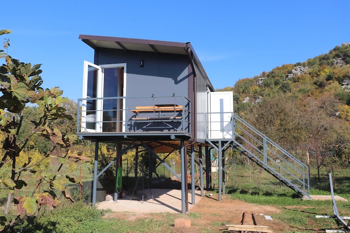 We (Kim and I) live on my family's tenth generation homestead, vineyard and pomegranate orchard. We've have embraced all things homesteading, complete with a large garden, chickens, ducks and even a few pigs. The property perks include hammocks under the vines, trails with 360 views of the valley, and the pick of any seasonal fruit as you roam the garden. The tiny home overlooks the orchard and the Mokset hills.