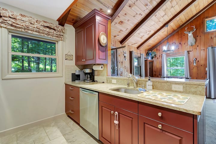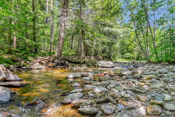 Close to 4 mnts. Private stream! King bed. Dogs OK