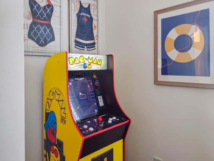 "We enjoyed the pool, all the electronic games and front porches. The furniture is plush, kitchen well equipped, and the mattresses are really comfortable. Beach access is directly across the street at the end of the block. We rented a golf cart and took that for coffee in the morning, to go fishing in the lakes, and even down to the Garden City pier. 10/10, would definitely recommend this place!” - Ezra