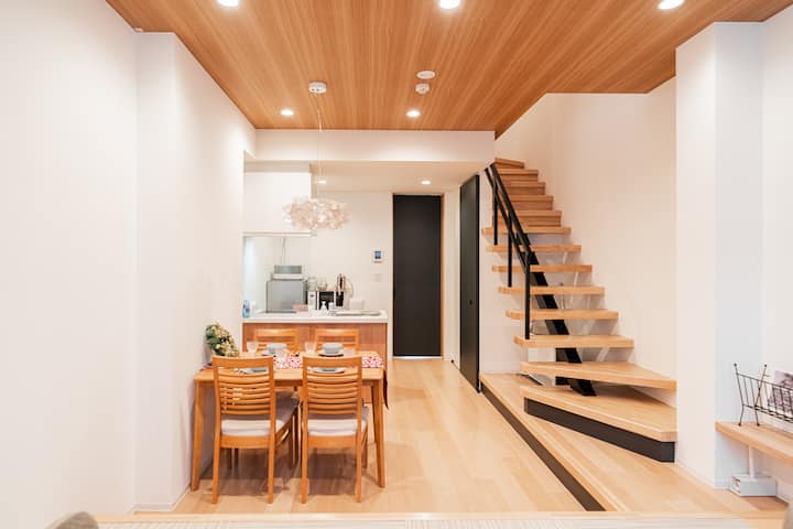 There is a toilet on the first floor, and a full-function bathroom (toilet + bathroom + sink) on the second floor. Fresh and comfortable towels and toiletries are provided to make your stay more convenient.