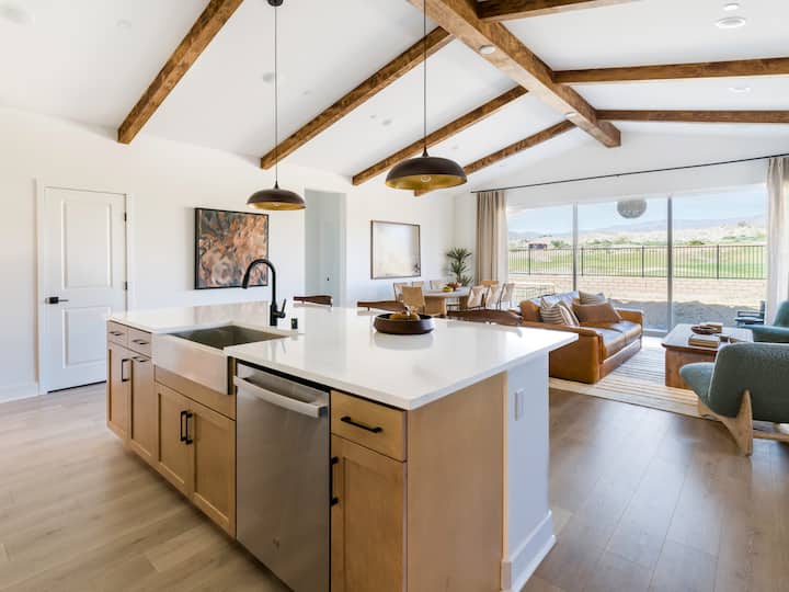 Welcome to ‘Ocho Terra Lago’, the stylish 3bd/2ba vacation home with stunning pool/spa area overlooking the gorgeous upper desert mountains on Terra Lago’s 8th Hole and residing in a quiet, gated neighborhood. Includes private saltwater pool and spa (heating optional) nestled in a big backyard which features a BBQ, lounge chairs, and firepit for first class entertaining. Located close to many area attractions including Empire Polo for music fests, Old Town La Quinta, El Paseo, and Restaurants.